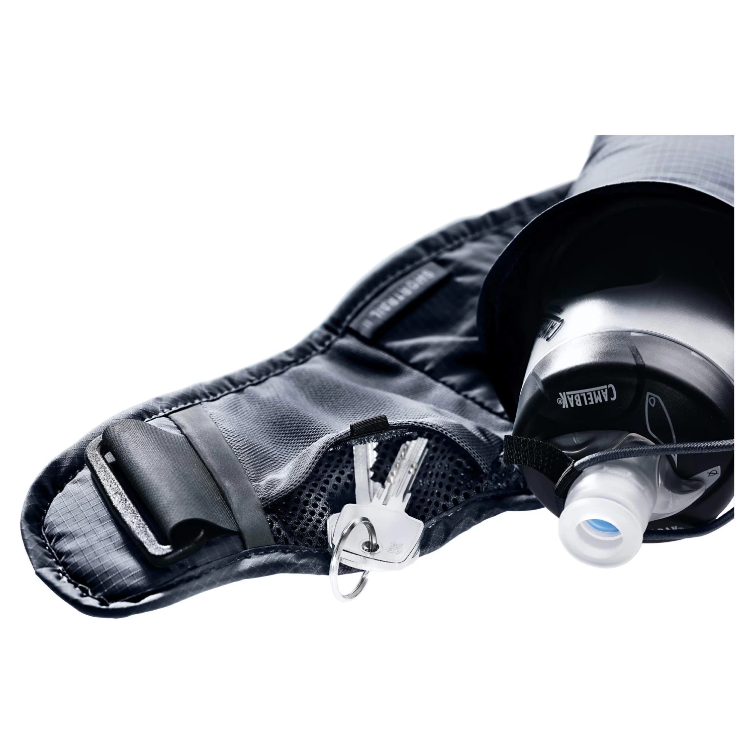 Wenn du gerne ausgedehnte Laufrunden auf dem Asphalt oder Trail drehst, solltest du ausreichend Flüssigkeit mitnehmen. Die Shorttrail II hat dafür extra ein stabiles Flaschenfach mit elastischer Schlaufe zum Sichern deiner Flasche. Dies ermöglicht eine unkomplizierte Nutzung und du kannst nach Belieben Wasser oder Sportdrinks mitführen. Zudem gibt es zwei Fächer für Gels, Riegel, Wertsachen und deinen Haustürschlüssel. Für einen sicheren Sitz sorgt der zuschneidbare Hüftgurt.