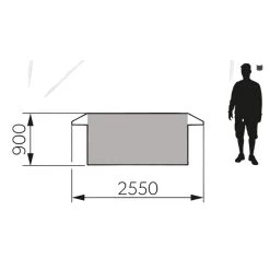 - Breiter, seitlicher Einstieg (mit den beiliegenden Tarpstangen als Vordach abspannbar)