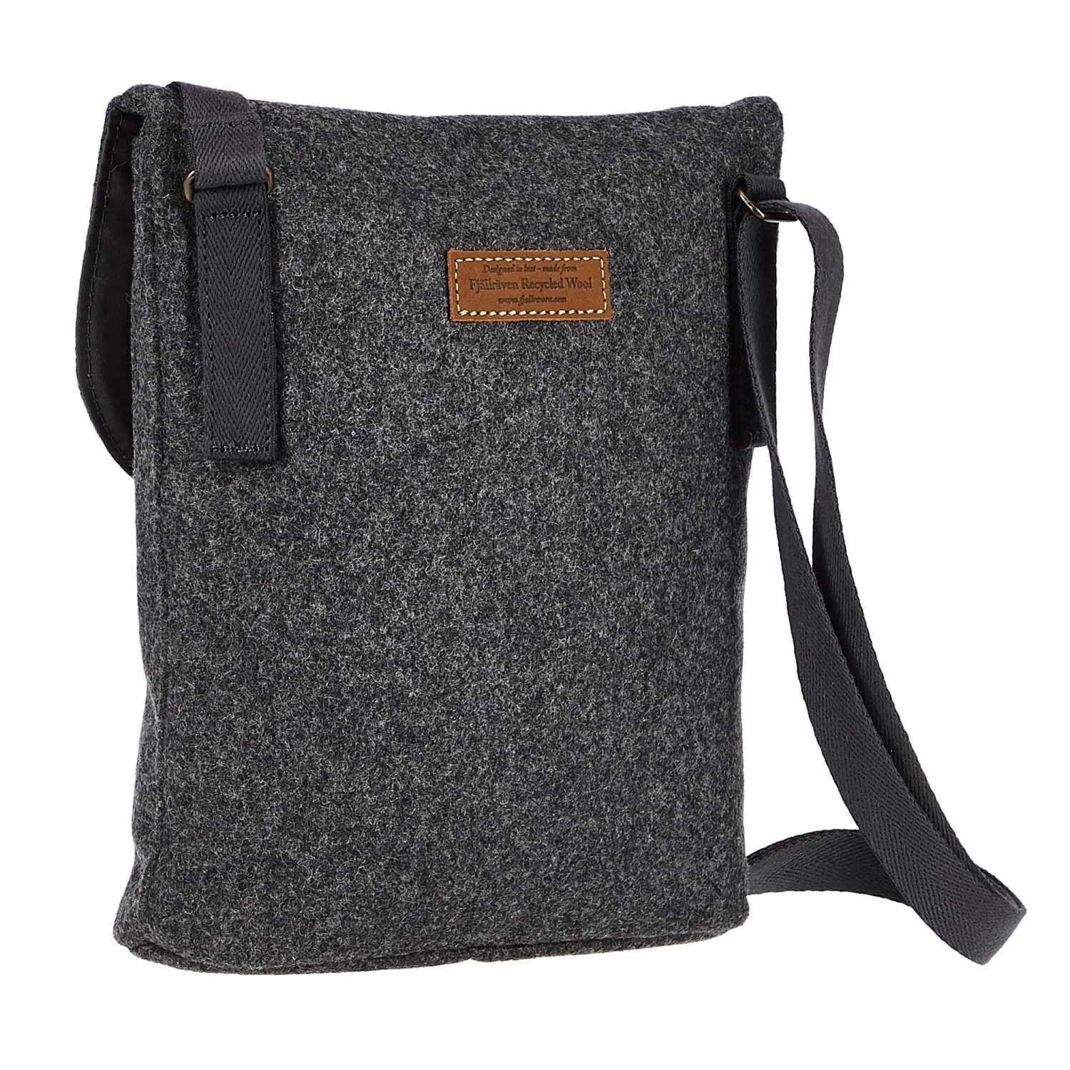 Die leichte, minimalistische Umhängetasche besteht aus recycelter Wolle und hat eine klassische Optik. Sie passt genauso gut ins Büro wie auf den nächsten Waldausflug.