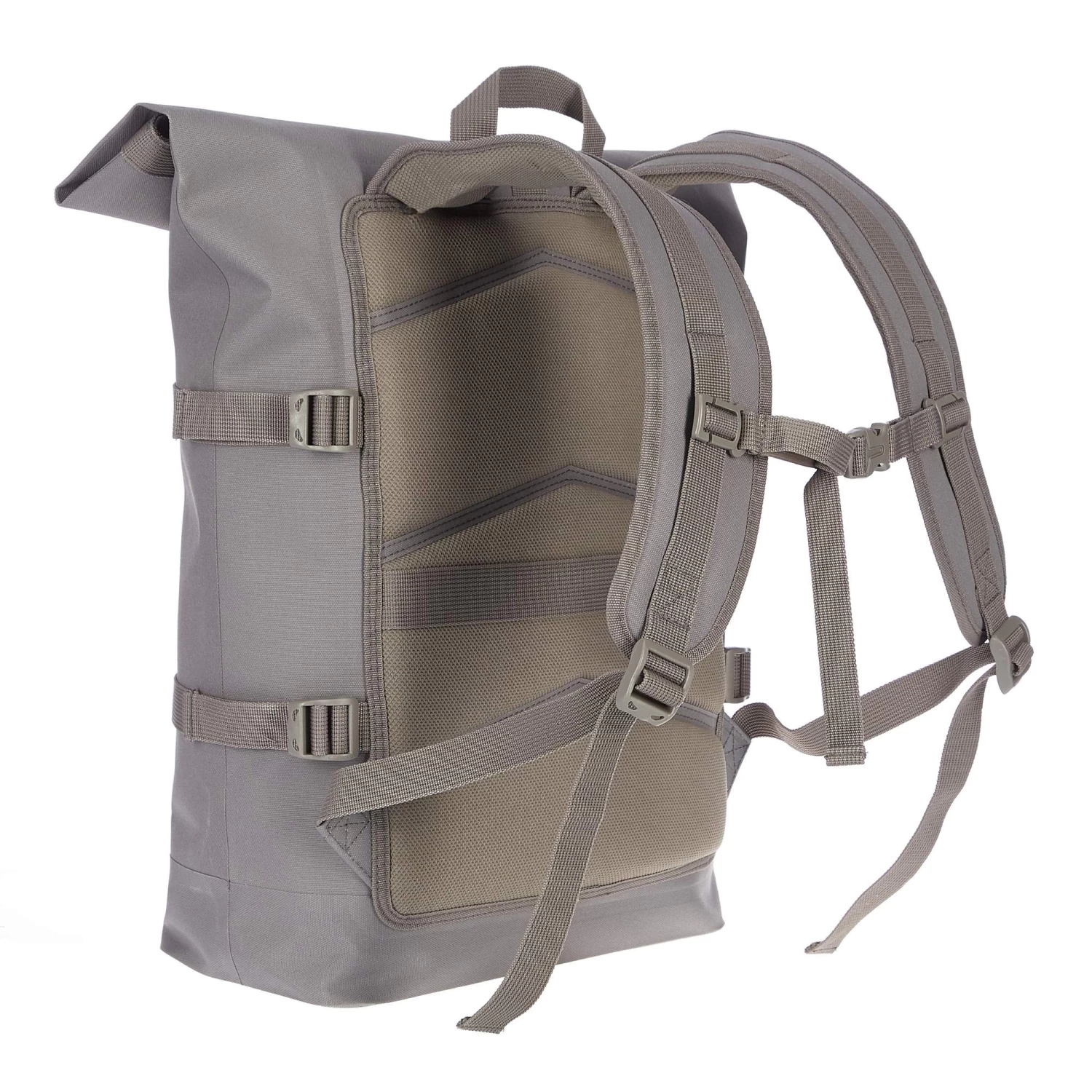 Besonders praktisch am Rolltop ist die herausnehmbare Laptophülle. So wird der Rucksack je nach Laune zum Arbeits- oder Freizeitrucksack. Für Kleinteile gibt es ein RV-Fach außen und innen, ansonsten hat das geräumige Hauptfach einfach richtig viel Platz für deine Dinge. Fest zugerollt, hält der Rollverschluss auch einem Regenschauer stand.