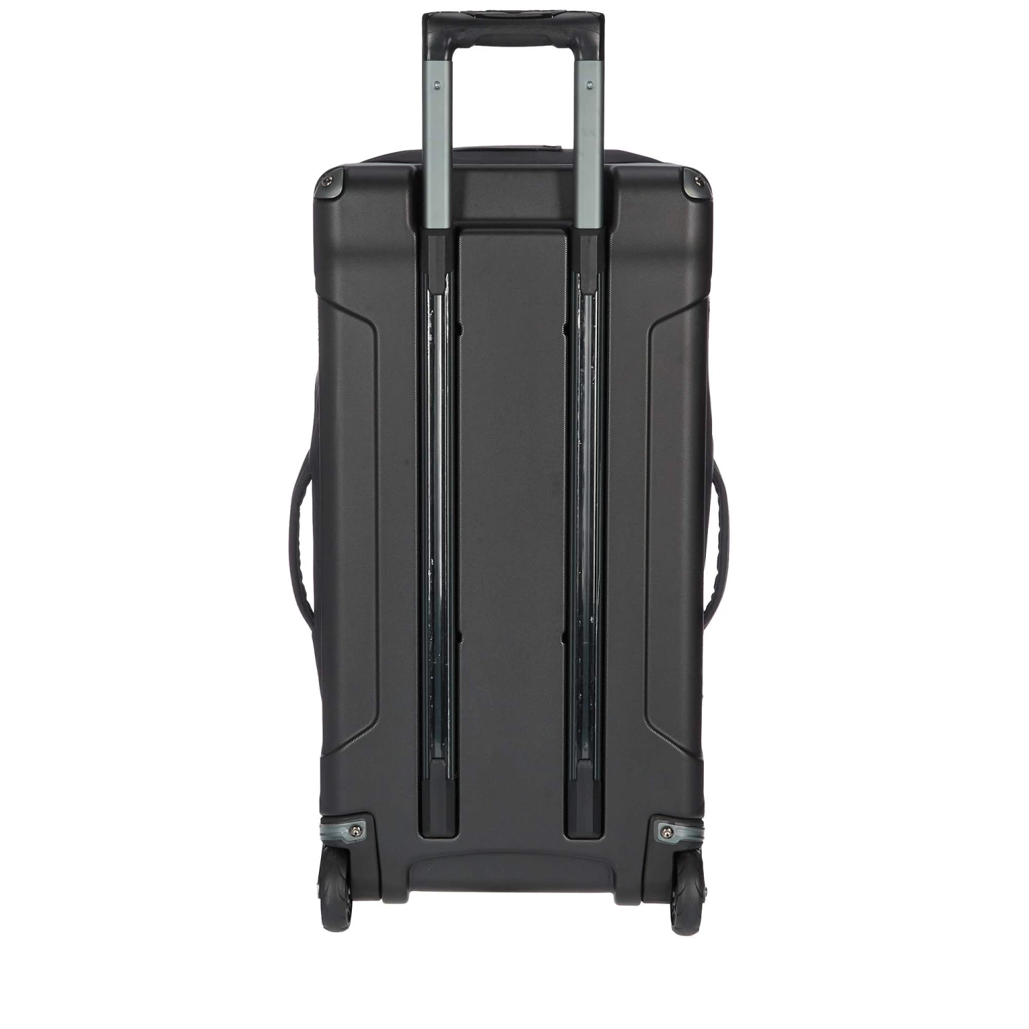 Der Traveltopia Wheeler 80 besteht komplett aus recyceltem Polyester mit einer wasserabweisenden Beschichtung, die ganz bewusst ohne PVC, PFC und Lösungsmittel auskommt.