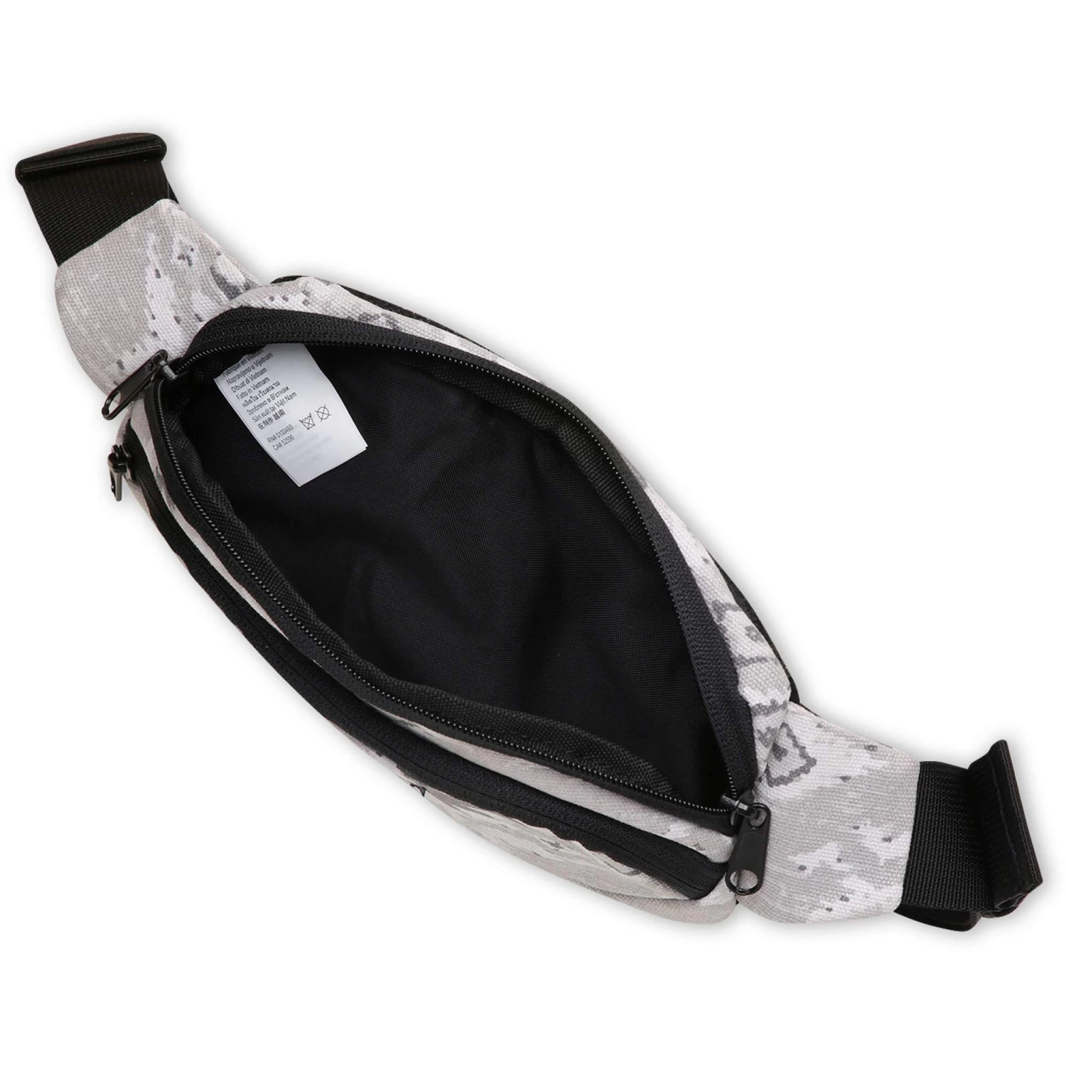 Der Hüftgurt lässt sich auf eine Länge von 43 cm – 127 cm verstellen. Wie bei einem Rucksack sitzt die Hüftgurtschnalle mittig und kann beidseitig verstellt werden. Zwei RV-Fächer bieten getrennten Platz für Smartphone, Snacks und Schlüssel. Rückseitig ist die Canvas Spectator weich gepolstert und mit atmungsaktivem Mesh bezogen.