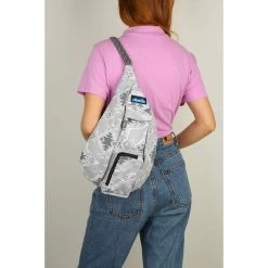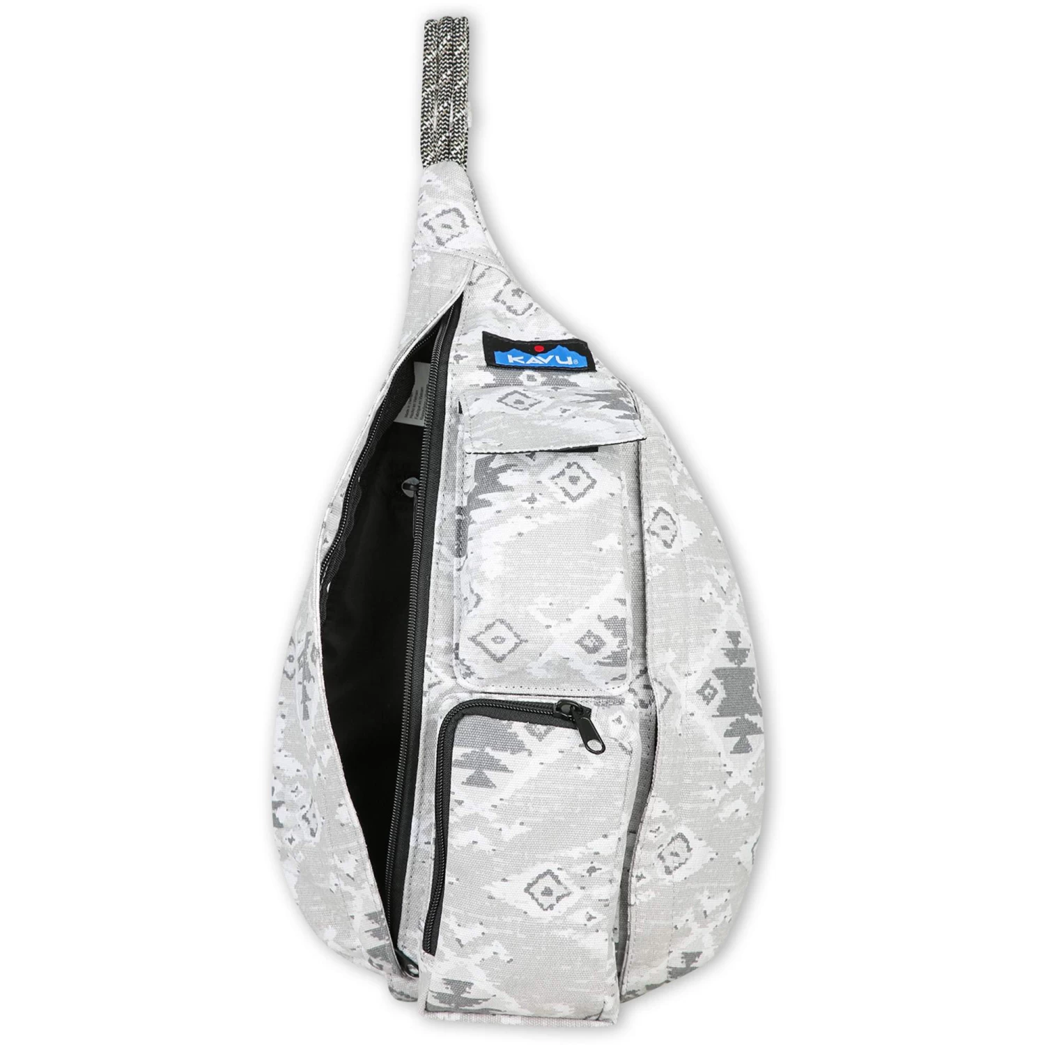 Der lässige Rope Bag von Kavu in der Miniversion. Der kleine Slingbag bietet Platz für alles Wesentliche und fällt mit seinem Schultergurt aus Seilen sofort ins Auge.