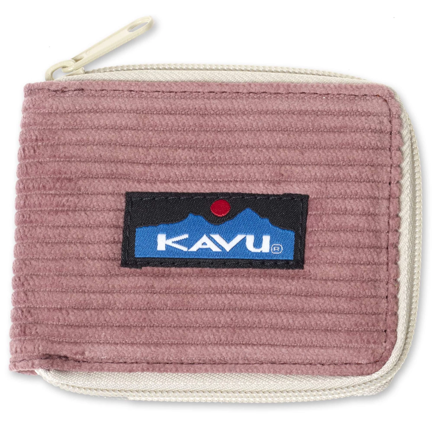 Das kleine Portmonee für Reise und Alltag besteht aus robustem, breit gestreiften Baumwollcord. Die Farben sind herrlich leuchtend und auf der Front ist das Kavu-Berglogo aufgenäht.