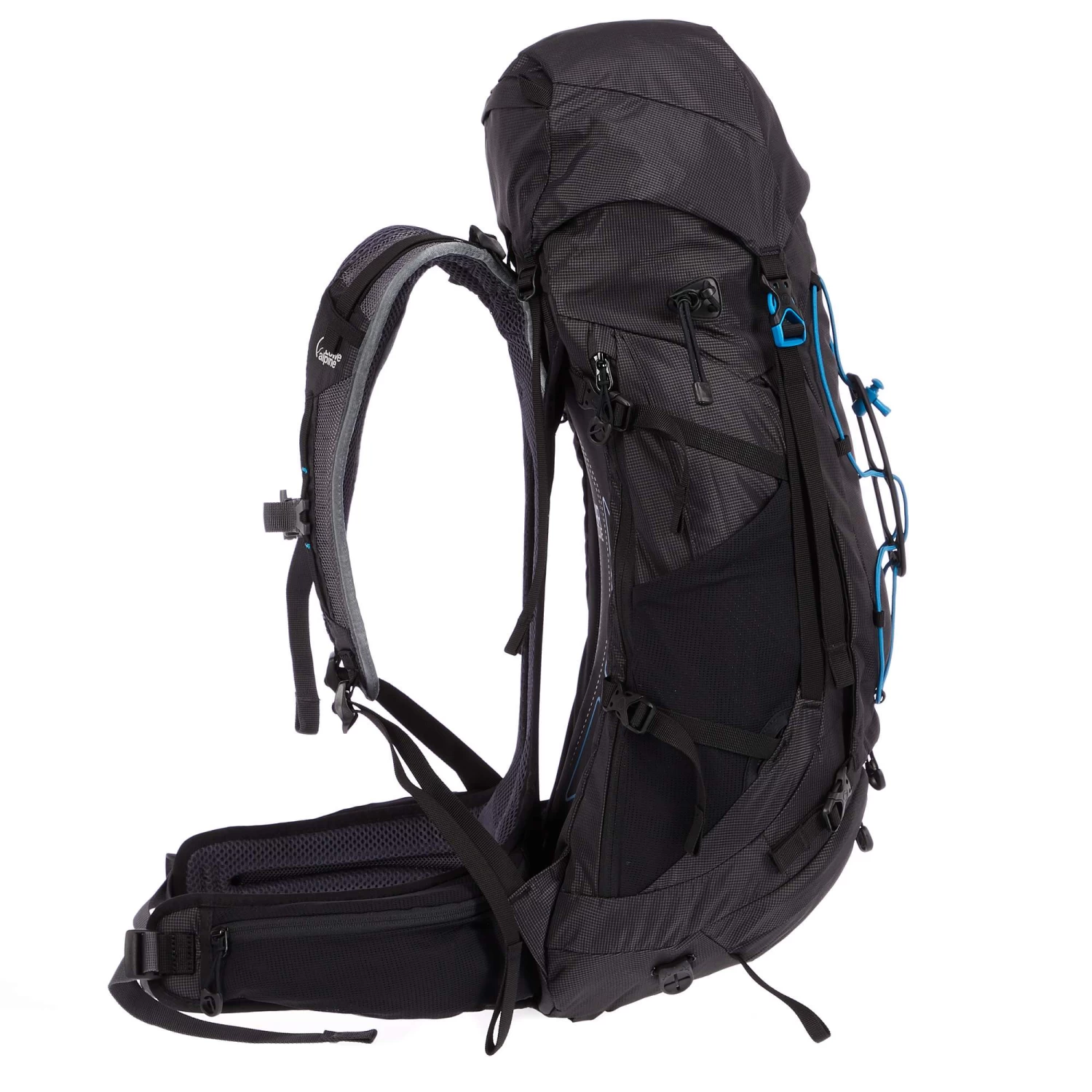 Der gespannte Netzrücken hat in der Mitte einen ausgeschnittenen Bereich, der die Auflagefläche des Rucksacks auf deinem Rücken minimiert und so für ganz viel Luftzirkulation sorgt. Damit bleibt dein Rücken auf schnellen, schweißtreibenden Touren angenehm trocken. Auch bei den Schultergurten und dem Hüftgurt hat Lowe Alpine ganz auf Netzmaterial gesetzt. Der Hüftgurt ist zweigeteilt und passt sich durch dieses Design perfekt deiner Hüftform an. Der untere Teil sitzt fest an der Hüfte, während sich der obere Teil flexibel anschmiegt. Dies ergibt super Belüftungswerte bei uneingeschränktem Tragekomfort und sehr guter Lastenverteilung.