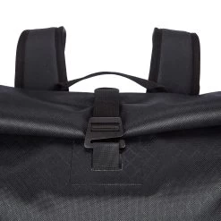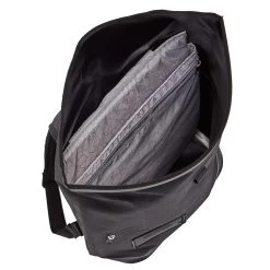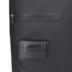 Das komplett schwarze Außenmaterial des Daypack Metrosphere 21L hat ein schickes Rautenmuster eingeprägt. Auch der Metallhaken des Rollverschlusses ist farblich passend schwarz gehalten. Auf der schlichten Front findest du ein Einsteckfach für deine Adresse, sodass dir der Rucksack beim Reisen nicht verloren gehen kann. Dazu kommen zwei RV-Fächer, damit du deine Wertsachen und Kleinteile griffbereit hast.