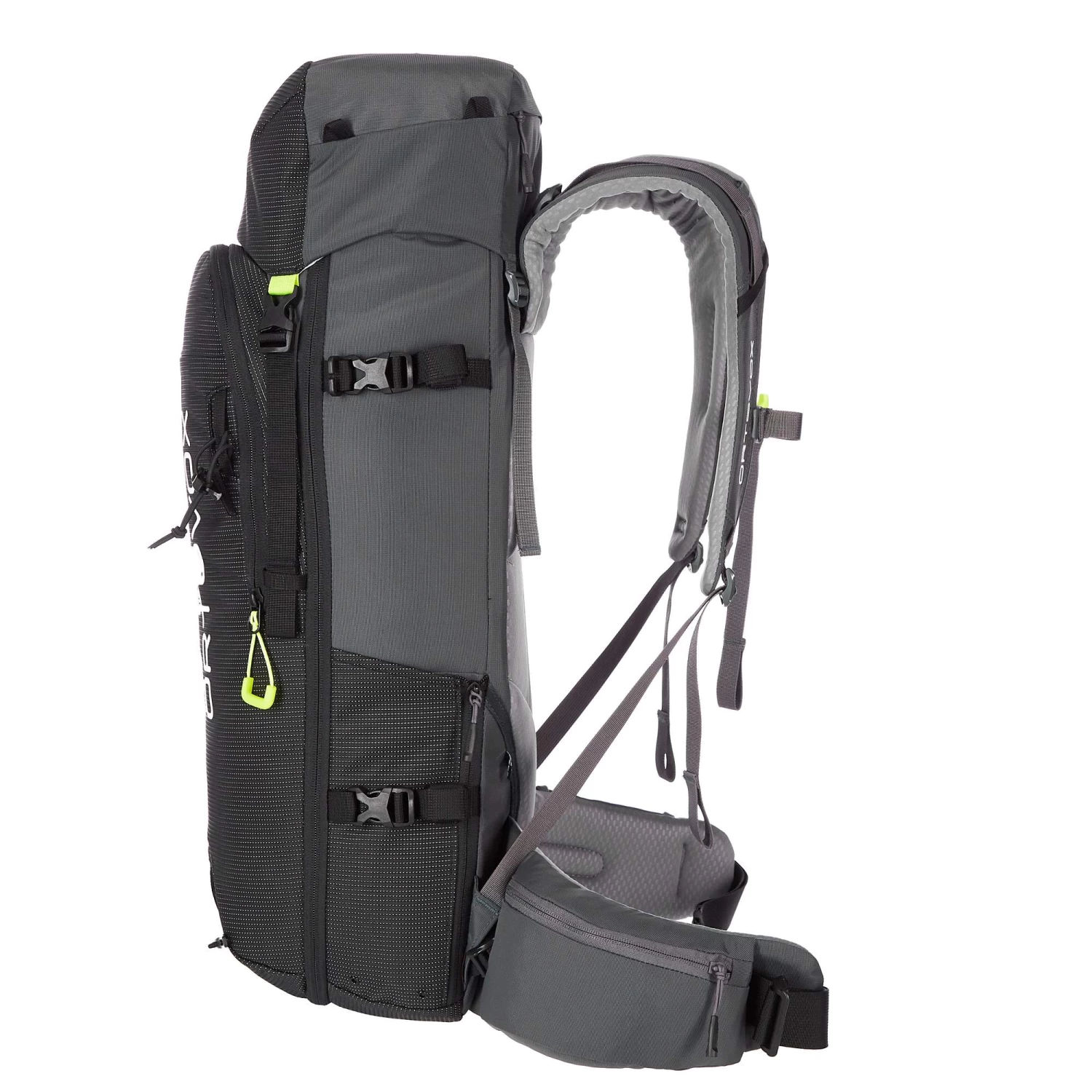 Die Gewichtsverteilung und hohe Stabilität des Tragesystems wird von Metallstreben unterstützt. Die Schultergurte und der Hüftgurt sind angenehm breit und ergonomisch vorgeformt.