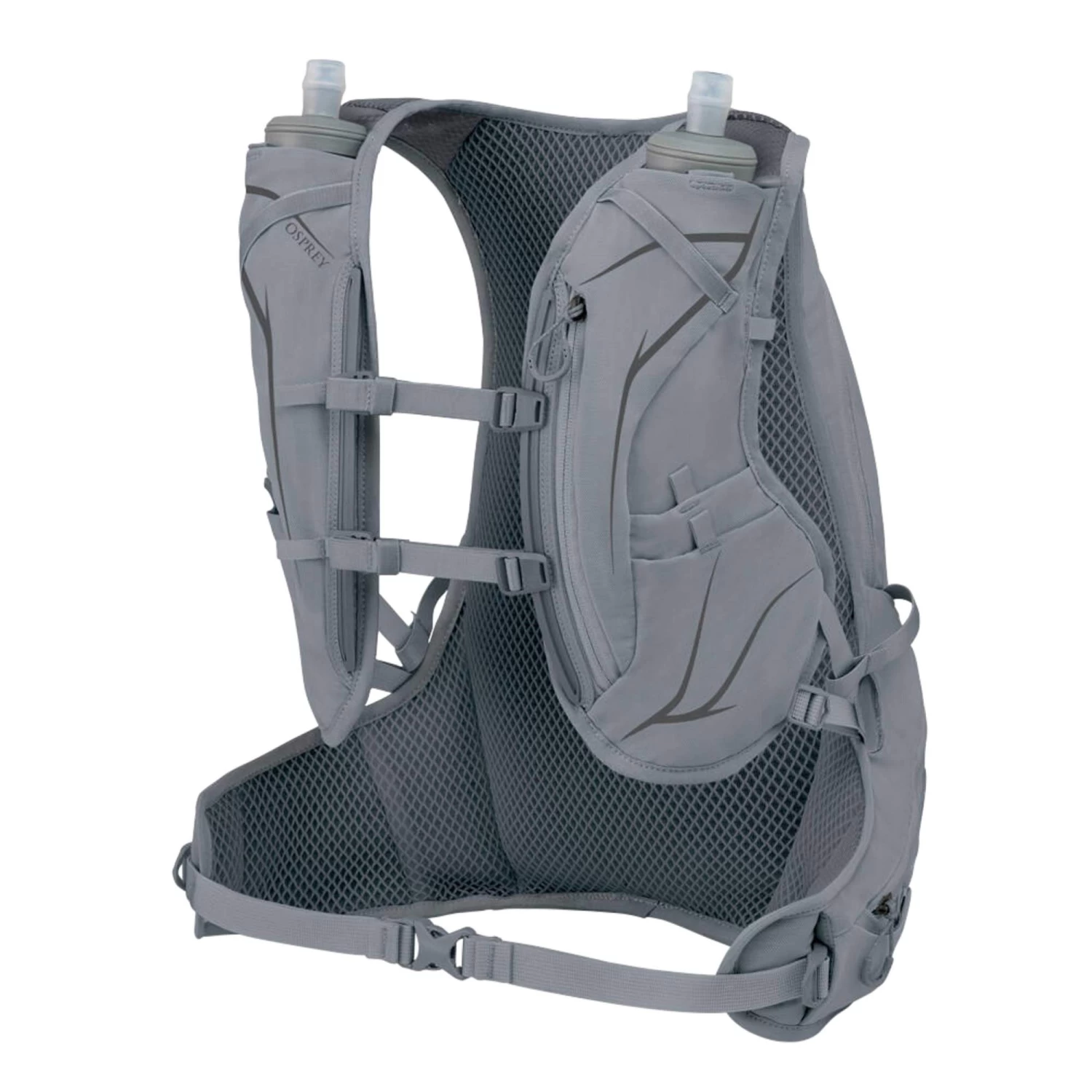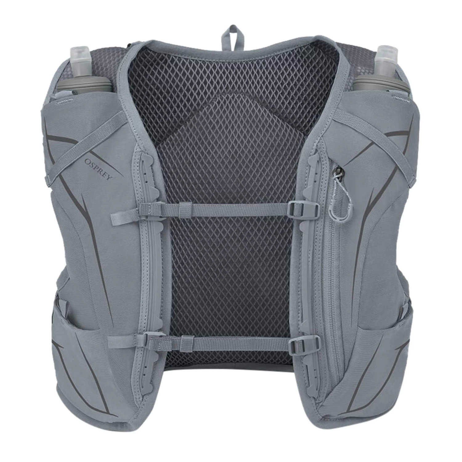 Bei der Dyna 1.5 liegen direkt zwei 250 ml Hydraulics Soft Flasks von Osprey bei. Die flexiblen Trinkflaschen passen perfekt in die beiden Flaschenhalter auf der Brust und stören durch ihre weiche Form nicht beim Laufen. Wenn du schon Flaschen besitzt oder weniger Stauraum benötigst, ist die Dyna LT eine gute Alternative zur Dyna 1.5 (siehe Zubehör).