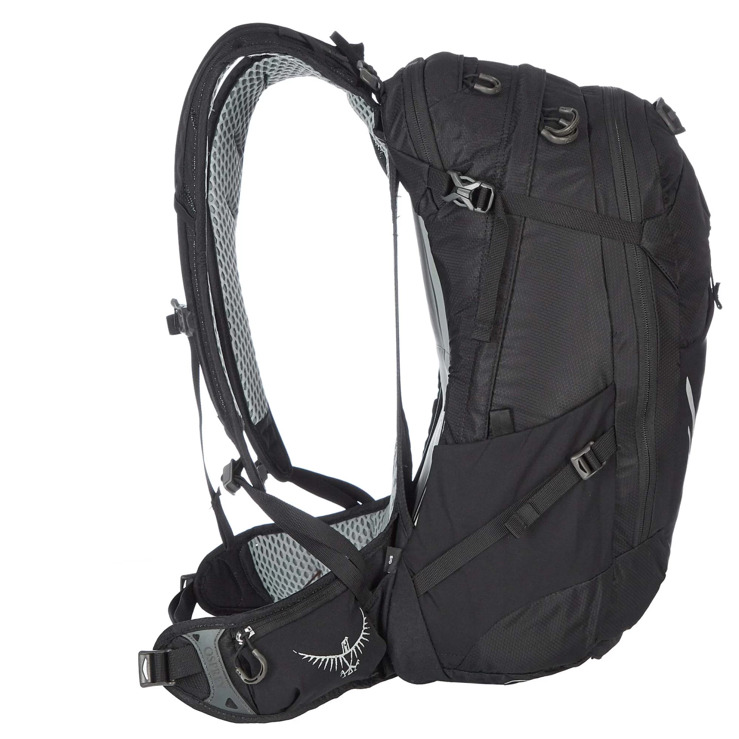Das Osprey Meister der Belüftung sind, beweisen sie auch beim Syncro 20 wieder eindrucksvoll. Der gespannte Netzrücken hält deinen Rücken schön trocken und angenehm kühl. Damit auch im Hochsommer das Radfahren ein Vergnügen bleibt! Der Nackenbereich besteht aus reinem Mesh und die bikespezifisch vorgeformten Schultergurte aus einem stark perforierten Schaum. Der Syncro 20 ist das größte Modell der Serie und hat einen leicht elastischen Hüftgurt aus weichem Airmesh.