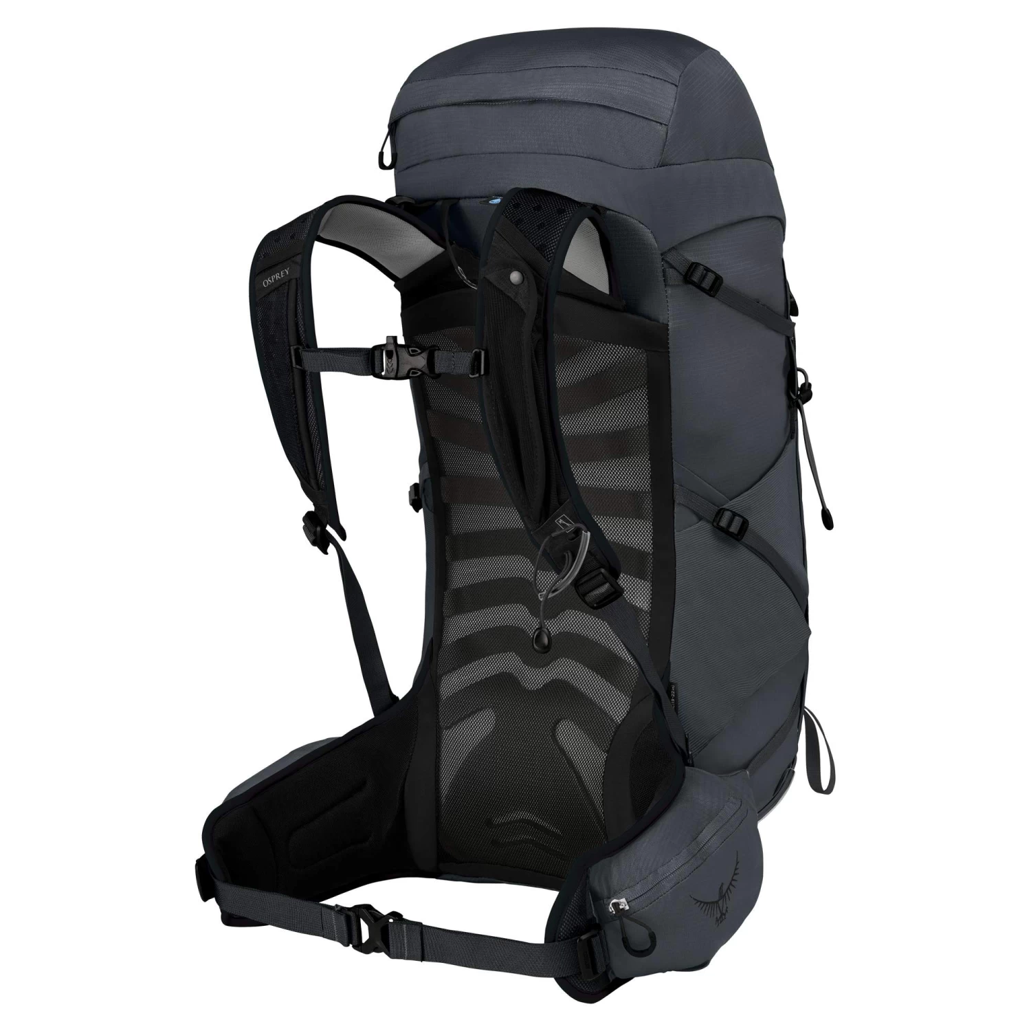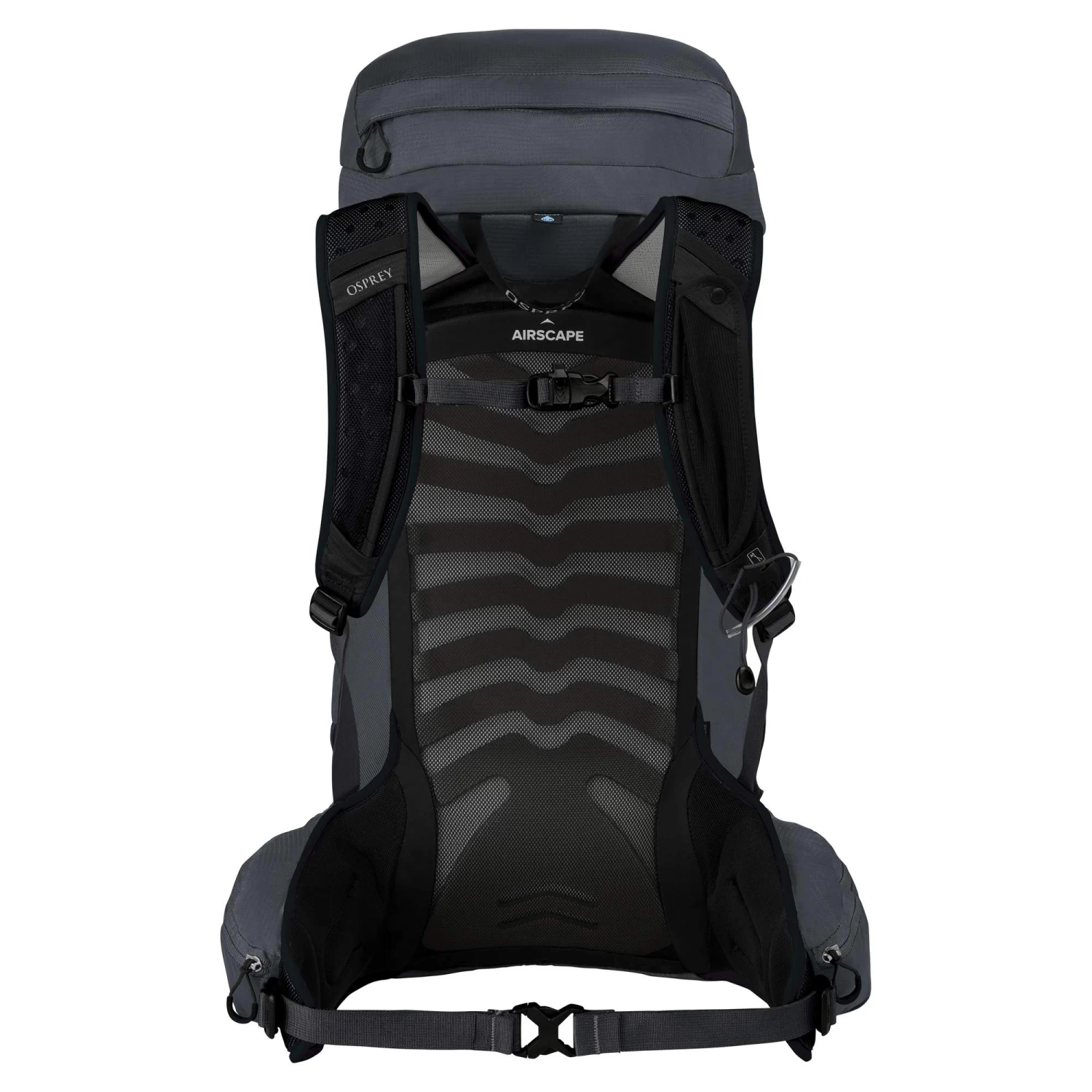 Die Talon/Tempest-Reihe wurde von Osprey mit dem modernen AirScape-Rückensystem ausgestattet. Die feste HDPE-Rückenplatte ist spritzgegossen und bleibt auch bei hoher Traglast verwindungssteif. Dabei passt sich das Material immer noch dem Rücken an. Der Meshbezug sorgt für eine sehr gute Belüftung des Rückens.