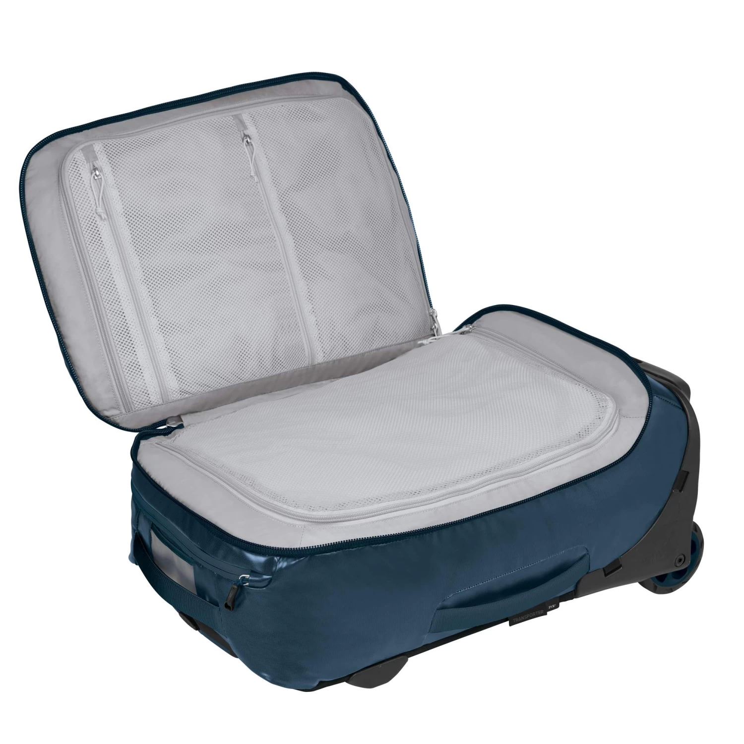Das Innenleben des Rolling Transporter Carry-On ist übersichtlich gestaltet. Im Hauptfach sorgen Netzfächer dafür, dass deine Kleidung an Ort und Stelle bleibt. Im 15″-Laptopfach ist Platz für weitere Elektronik. Ein separater RV-Zugang macht einen schnellen Zugriff beim Check-in möglich.