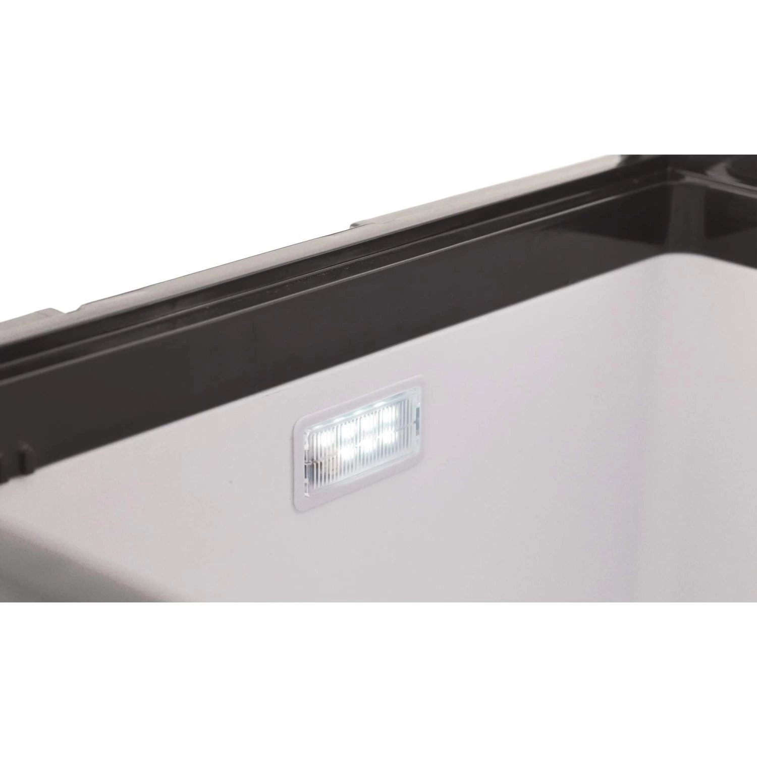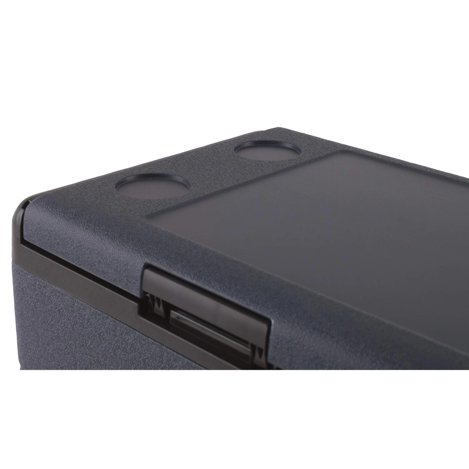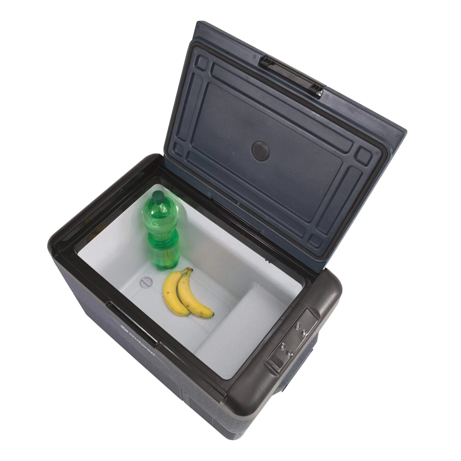 Kompressorkühlbox für 12 V und 240 V Anschlüsse. Die exakte Temperaturkontrolle bis -20 °C erlaubt die dauerhafte Lagerung von Getränken, Obst, Gemüse, Eis und TK-Fleisch.