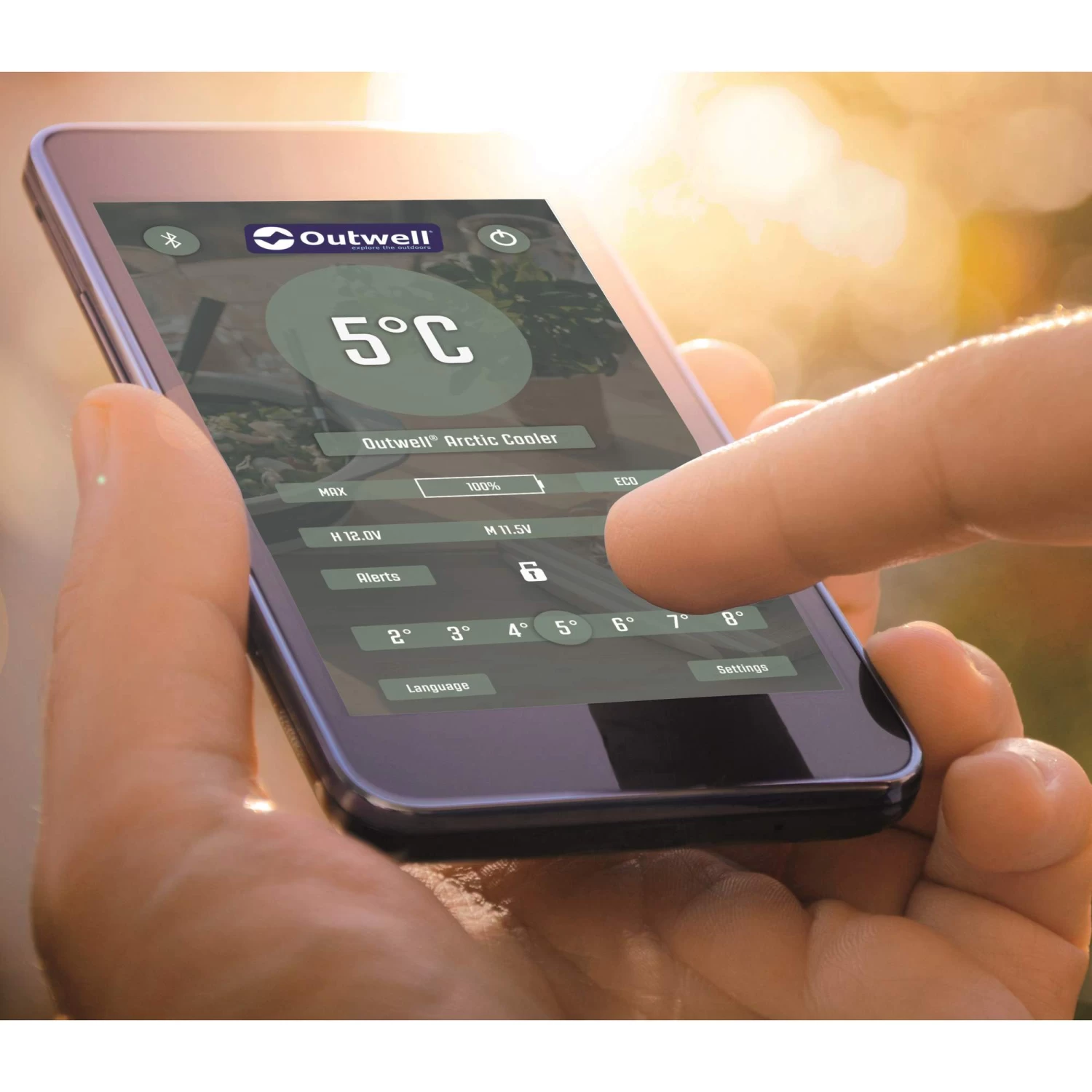 Oder du greifst zum Smartphone und bedienst die bluetoothfähige Kompressorkühlbox über die kostenlose App. Über sie kannst du sämtliche Konfigurationen bequem aus dem Campingstuhl heraus vornehmen.