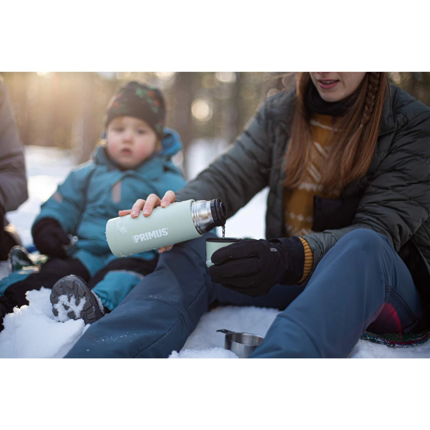 Die kleinste Thermoflasche von Primus ist gerade so bemessen, dass du deinen großen Thermobecher einmal auffüllen kannst. Ideal für den Arbeitsweg, kleine Ausflüge und Kinder.