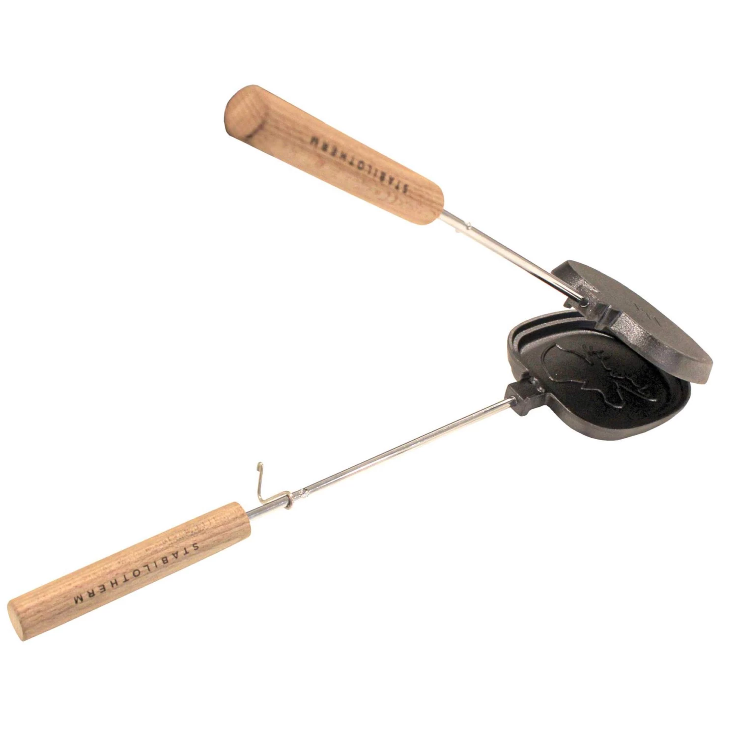 Der Sandwichmaker aus Stahl eignet sich fĂĽr hohe Temperaturen und bereitet leckere Sandwiches direkt auf dem Lagerfeuer zu. Verziert wird das Sandwich mit einem Elchmotiv!