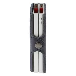 Das Twinwallet besteht aus 2 Cardprotectors. In jedem der beiden Cardprotectors kannst du 4 geprägte oder 6 ungeprägte Karten (also bis zu 12 insgesamt) unterbringen. Mit einer einfachen Betätigung des Hebelmechanismus lassen sich diese aufgefächert hinausschieben. Das geht auch ganz ohne das Portmonee zu öffnen. Der Cardprotector schützt deine Karten vor dem Auslesen (RFID-safe) und auch vor Beschädigungen.