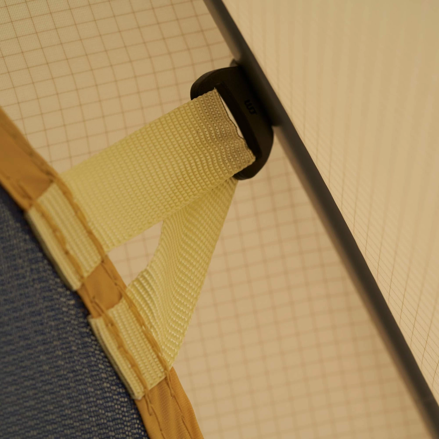 Praktische Kleinigkeiten bieten einen hohen Komfort. So musst du die Eingangstür nicht umständlich aufrollen, sondern kannst sie geöffnet in einer Deckentasche verstauen. Dadurch liegt sie auch nicht im Weg, wenn du deinen Schlafplatz auf- oder abbaust. Vier Mesh-Seitentaschen nehmen zudem Kleinteile wie Stirnlampe, Ladekabel oder Smartphone auf. Die drei Schlaufen im Zelthimmel ermöglichen das Spannen einer Wäscheleine oder das Aufhängen einer Zeltlaterne.