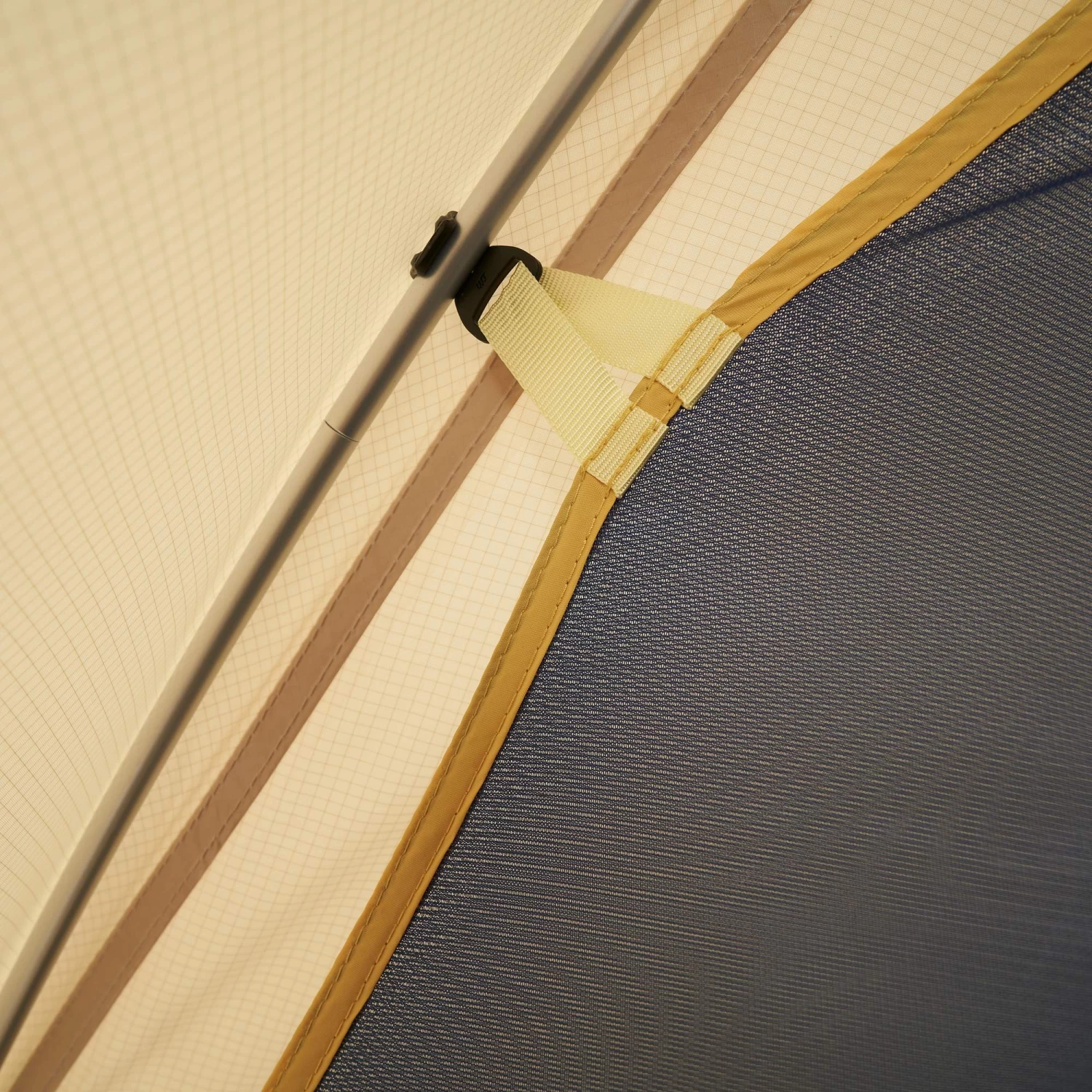 Das Innenzelt wird durch das hochwertige DAC-Gestänge im Hybrid-Design weit aufgespannt, was viel Bewegungsfreiraum im Zelt schafft. Die Liegefläche ist fĂĽr zwei Personen groĂźzĂĽgig bemessen und nimmt bei Bedarf auch eine dritte Person mit auf.Â